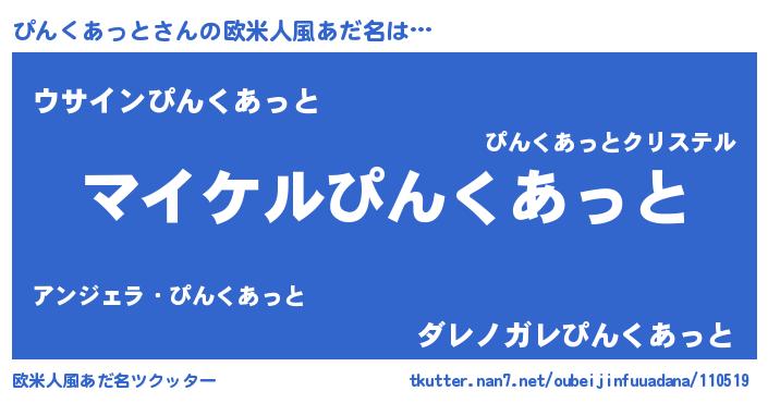 | 男性向けラノベタイトル風あだ名 | 『ぴんくあっとの憂鬱』 |