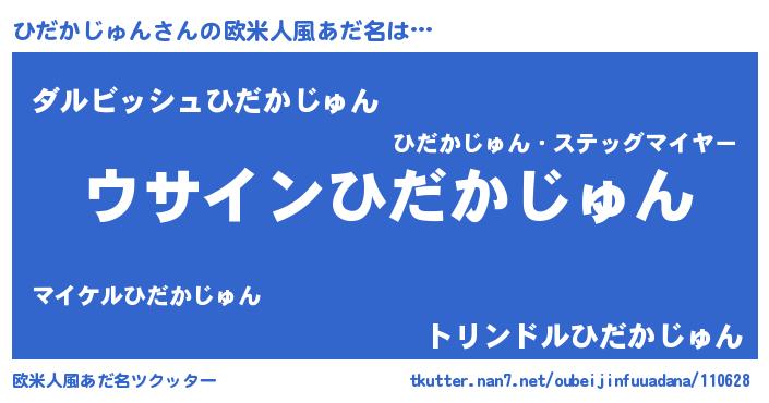 | 男性向けラノベタイトル風あだ名 | 『ひだかじゅんの嫁は女の子じゃないと思った?』 |
