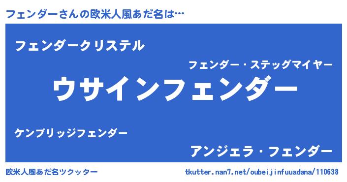 | 男性向けラノベタイトル風あだ名 | 『フェンダーの嫁は女の子じゃないと思った?』 |