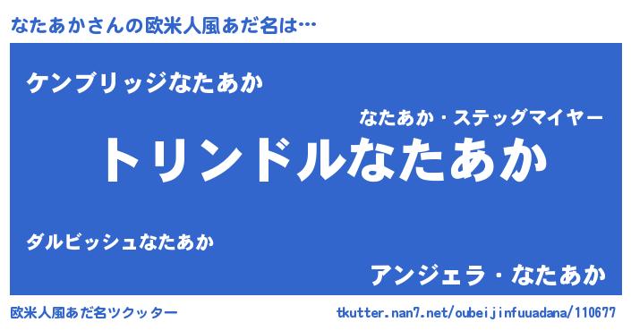 | ヘコむあだ名 | 『なたあか(遠い目)』『なたぷりん』 |