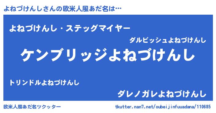 | 意味不明あだ名 | 『自称よねづけんし』 |