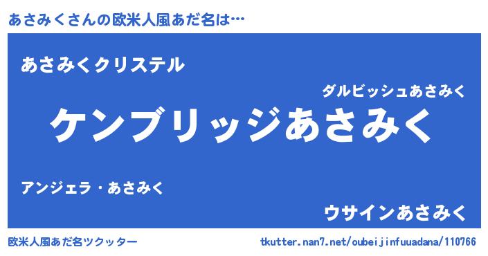 | ファンタジー風あだ名 | 『ゼアサトゥ』『エターナルアサミクー』 |