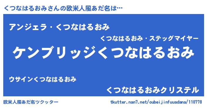 | 男性向けラノベタイトル風あだ名 | 『Re:くつなはるおみから始める異世界生活』 |
