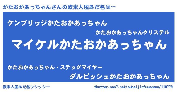 | 胡散臭い通販商品みたいなあだ名 | 『億万長者になれるブレスレット…その名も「かたおかあっちゃん」』 |