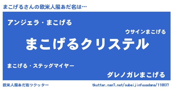 | 意味不明あだ名 | 『まこげるフォーエバー』『自称まこげる』 |