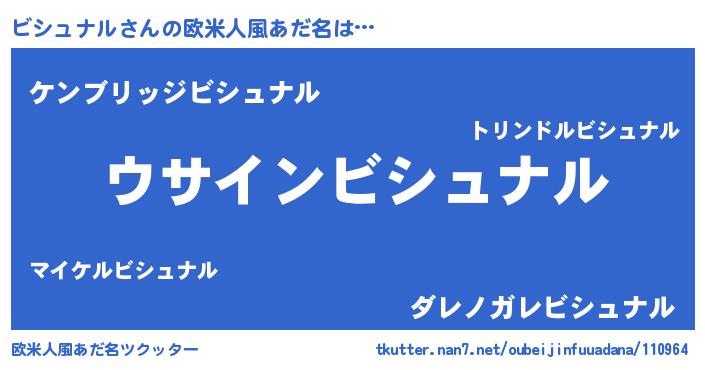 | 女子向けラノベタイトル風あだ名 | 『ビシュナルは平凡を望む』 |