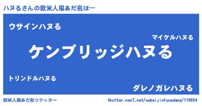 | 男性向けラノベタイトル風あだ名 | 『Re:ハヌるから始める異世界生活』 |