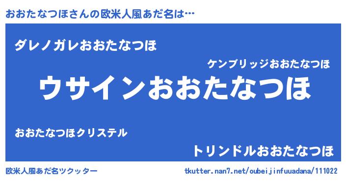 | 女子向けラノベタイトル風あだ名 | 『おおたなつほの卵を拾いまして』 |