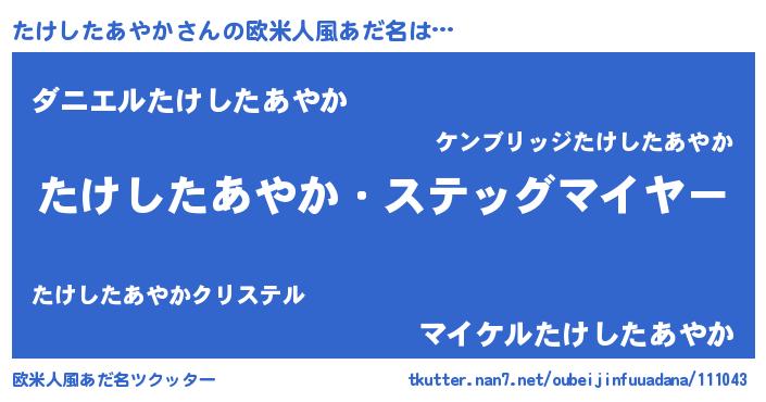 | ヘコむあだ名 | 『たけにー』『牛乳』『たけぷりん』 |
