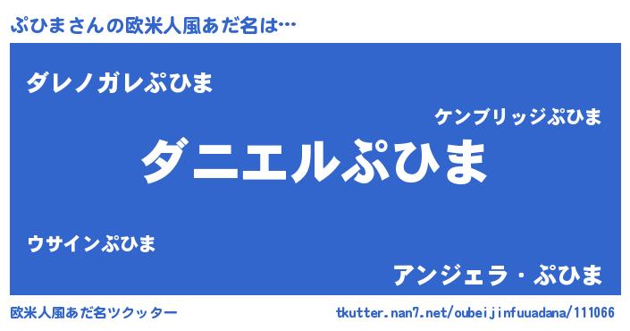 | 女子向けラノベタイトル風あだ名 | 『ぷひま夫妻のなれそめ』『闇のぷひま』 |