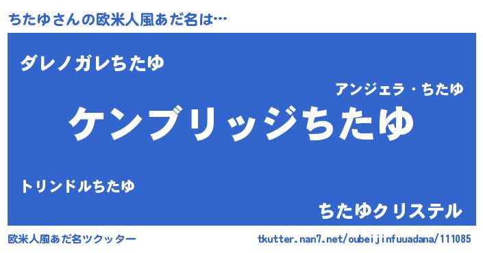 | 男性向けラノベタイトル風あだ名 | 『Re:ちたゆから始める異世界生活』 |