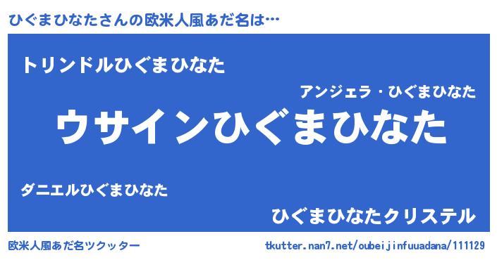 | 女子向けラノベタイトル風あだ名 | 『ひぐまひなたの卵を拾いまして』 |
