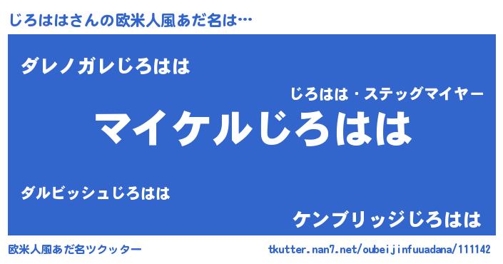 | 男性向けラノベタイトル風あだ名 | 『じろははの憂鬱』『魔弾の王とじろはは』 |