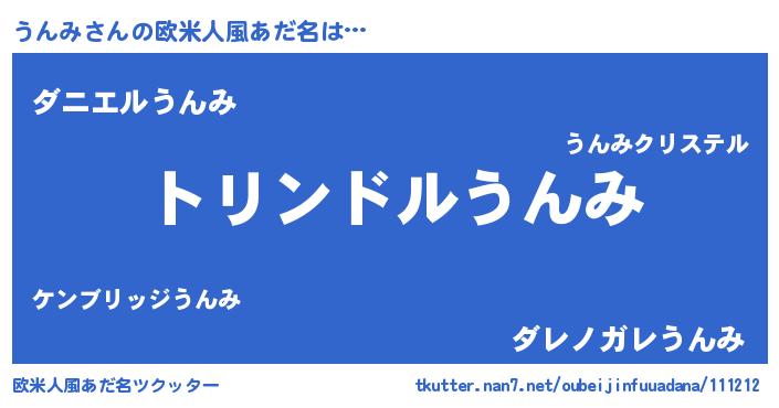 | 男性向けラノベタイトル風あだ名 | 『転生したらうんみだった件』 |