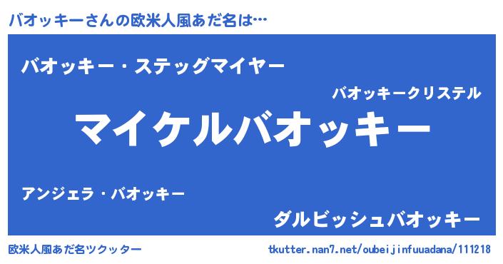 | 男性向けラノベタイトル風あだ名 | 『バオッキーアートオンライン』 |