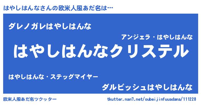 | ポケモン風あだ名 | 『ハヤシダネ』『ハーヤイ』 |