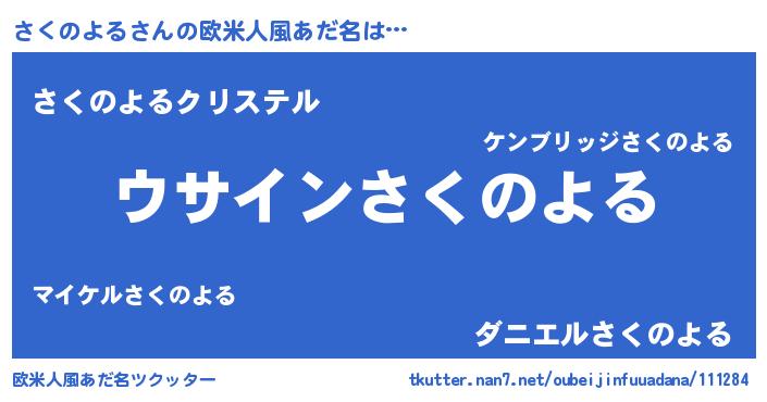 | 男性向けラノベタイトル風あだ名 | 『さくのよるの嫁は女の子じゃないと思った?』 |