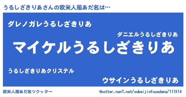 | 胡散臭い通販商品みたいなあだ名 | 『モテモテ間違いなし水晶球…その名も「うるしざきりあ」』 |