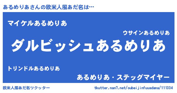 | ヘコむあだ名 | 『あるめりあ(笑)』『あるふぇ~』 |