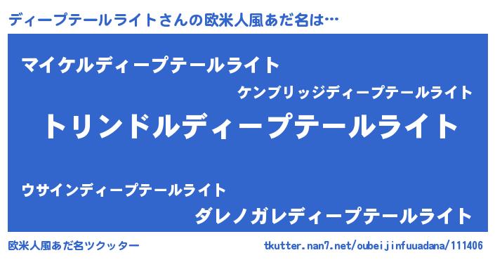 | 女子向けラノベタイトル風あだ名 | 『ディープテールライトの玉の輿計画!』 |