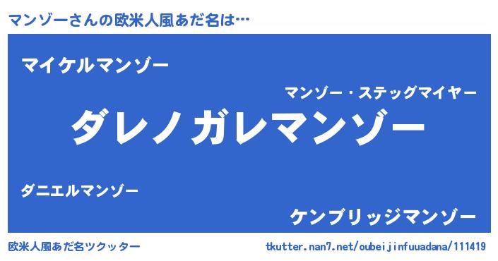 | 意味不明あだ名 | 『住所不定無職マンゾー(95歳)』 |