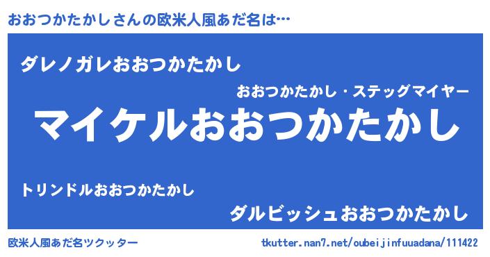 | 胡散臭い通販商品みたいなあだ名 | 『モテモテ間違いなし霊験あらたかなお札…その名も「おおつかたかし」』 |
