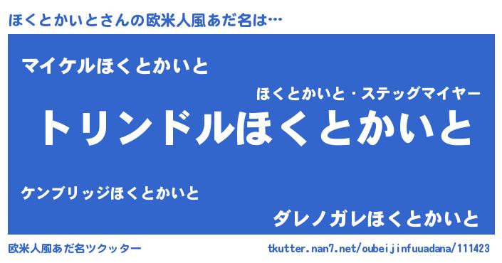 | 男性向けラノベタイトル風あだ名 | 『ホクトカイトスレイヤー』 |