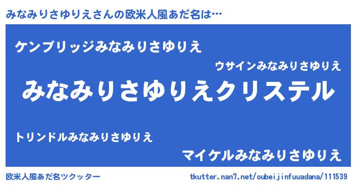 | 男性向けラノベタイトル風あだ名 | 『やはりみなみりさゆりえの青春ラブコメはまちがっている 』 |