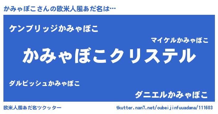 | 意味不明あだ名 | 『かみゃぼこフォーエバー』 |