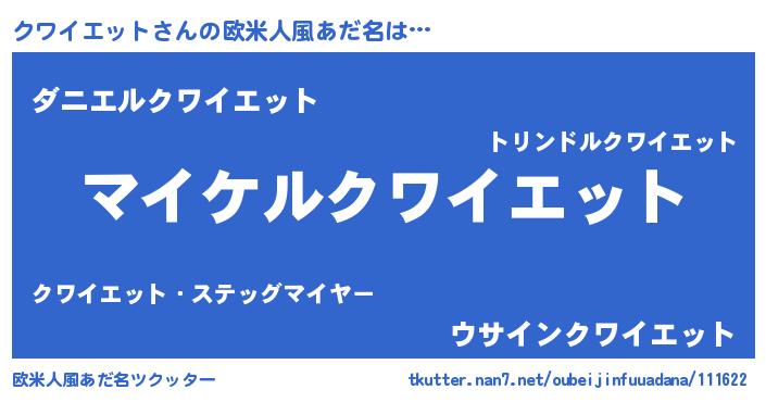 | ヒーロー風カッコイイあだ名 | 『スーパークワイエット』『天弓騎士クワ』 |