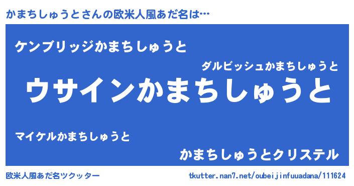 | 胡散臭い通販商品みたいなあだ名 | 『信頼と実績のサプリメント…その名も「かまちしゅうと」』 |