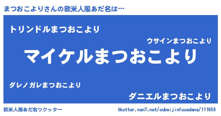 | 女子向けラノベタイトル風あだ名 | 『まつおこより姫と円卓の騎士』 |