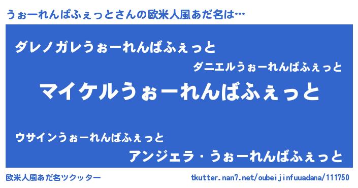 | ファンタジー風あだ名 | 『ウォフェル』『ヴァルウォーナ』 |