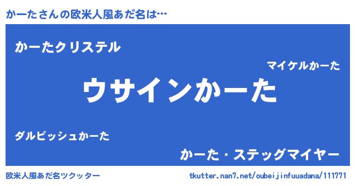 | 男性向けラノベタイトル風あだ名 | 『かーたの嫁は女の子じゃないと思った?』 |
