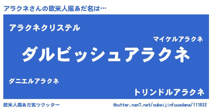 | 意味不明あだ名 | 『永久保存アラクネ』『ニラ科アラクネ属』 |
