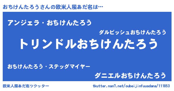 | 女子向けラノベタイトル風あだ名 | 『おちけんたろうの玉の輿計画!』 |