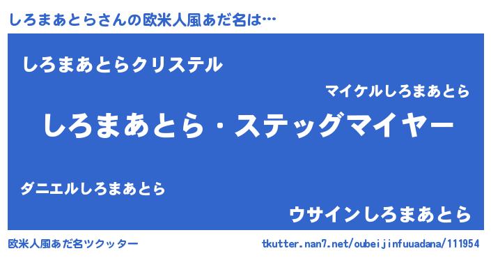 | 意味不明あだ名 | 『しろまあとらフォーエバー』 |
