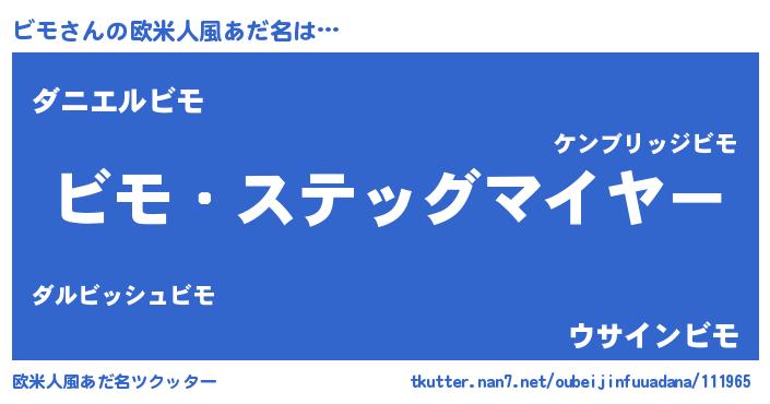 | 男性向けラノベタイトル風あだ名 | 『うちのビモが世界を掌握している!』 |