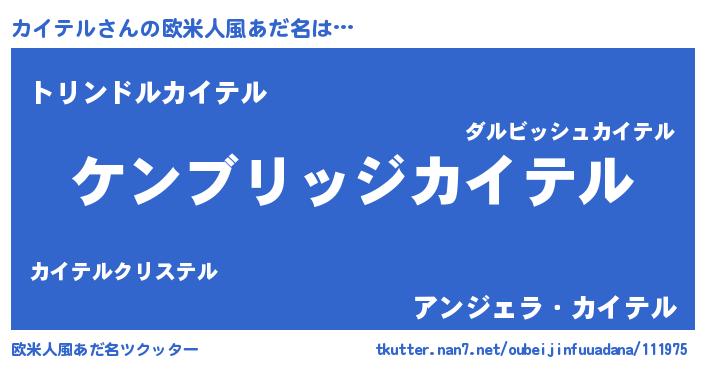 | 肩書あだ名 | 『カイテル総統』『カイテル中尉』 |