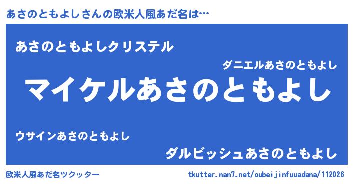| 男性向けラノベタイトル風あだ名 | 『あさのともよしの憂鬱』 |