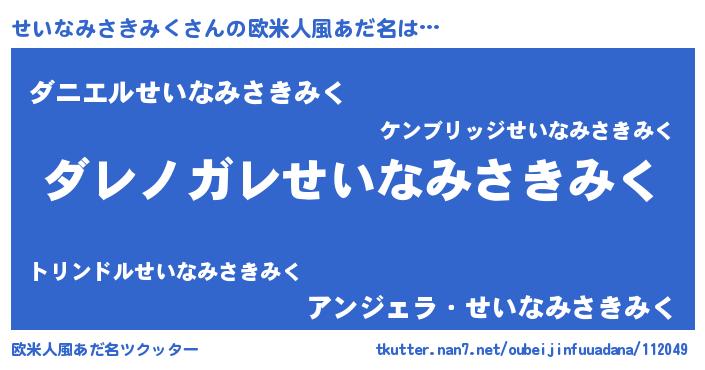 | ヘコむあだ名 | 『せいなみさきみく(笑)』『せいもー』 |