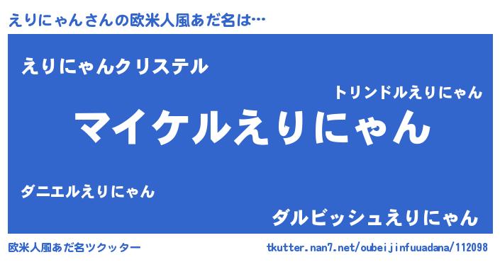 | 男性向けラノベタイトル風あだ名 | 『えりにゃんの憂鬱』 |