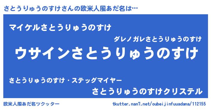 | 男性向けラノベタイトル風あだ名 | 『さとうりゅうのすけの嫁は女の子じゃないと思った?』 |