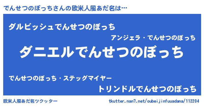 | ヘコむあだ名 | 『でんせつのぼっち(笑)』『でんにゅー』 |