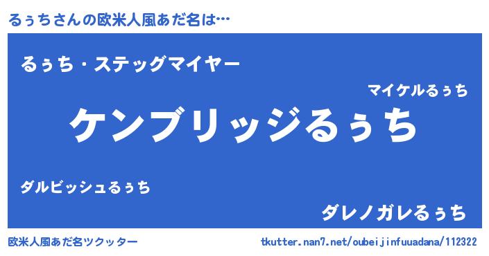 | ヘコむあだ名 | 『るぅっふぃ~』『るぅち(遠い目)』 |