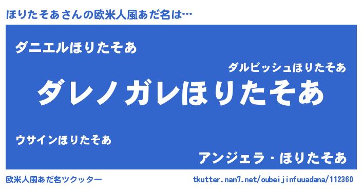 | ヘコむあだ名 | 『ほりたそあ(笑)』『ほりぷりん』 |