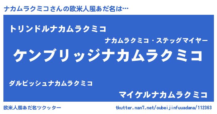 | 男性向けラノベタイトル風あだ名 | 『Re:ナカムラクミコから始める異世界生活』 |