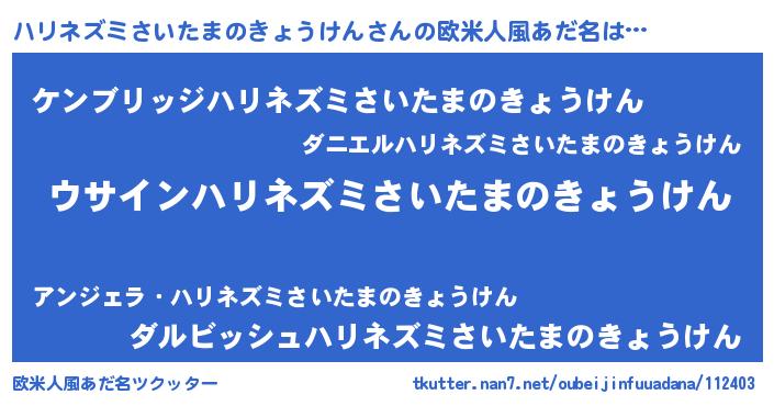 | 意味不明あだ名 | 『とにかく怪しいハリネズミさいたまのきょうけん』 |