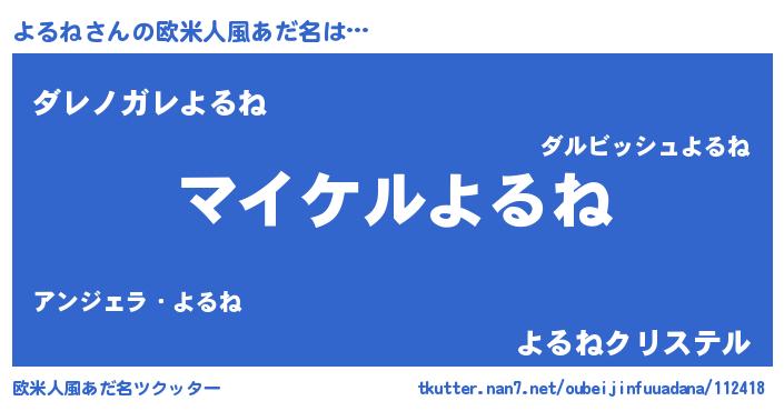 | 男性向けラノベタイトル風あだ名 | 『よるねの憂鬱』『はたらくよるねさま!』 |
