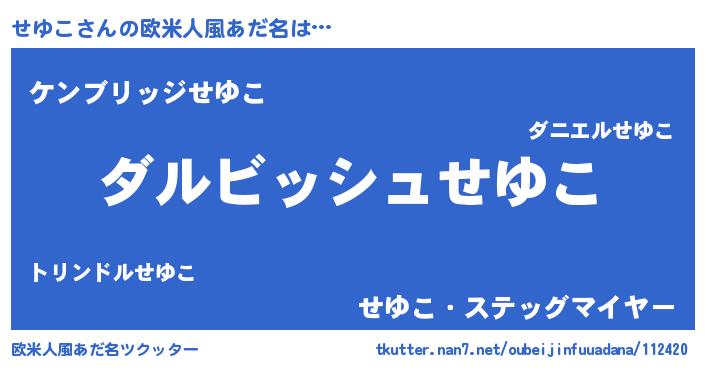 | ヘコむあだ名 | 『せゆこ(遠い目)』『せゆお』『牛乳』 |